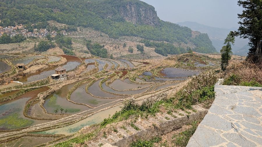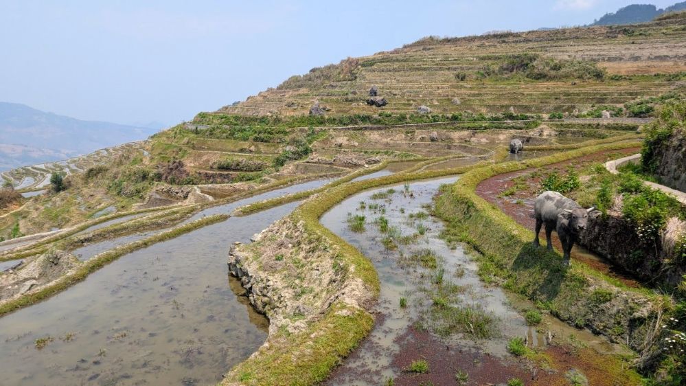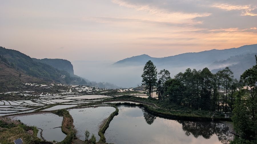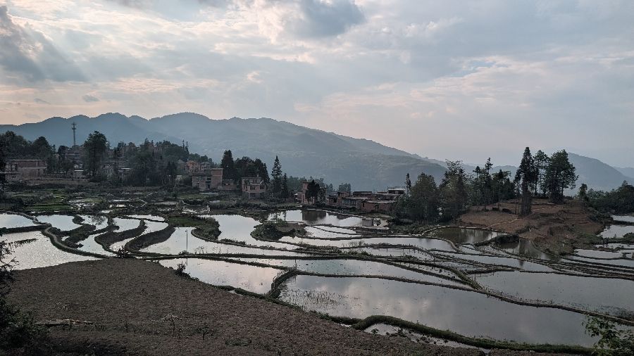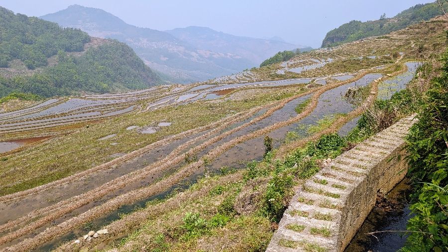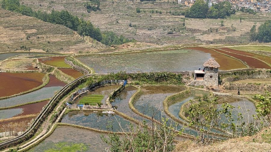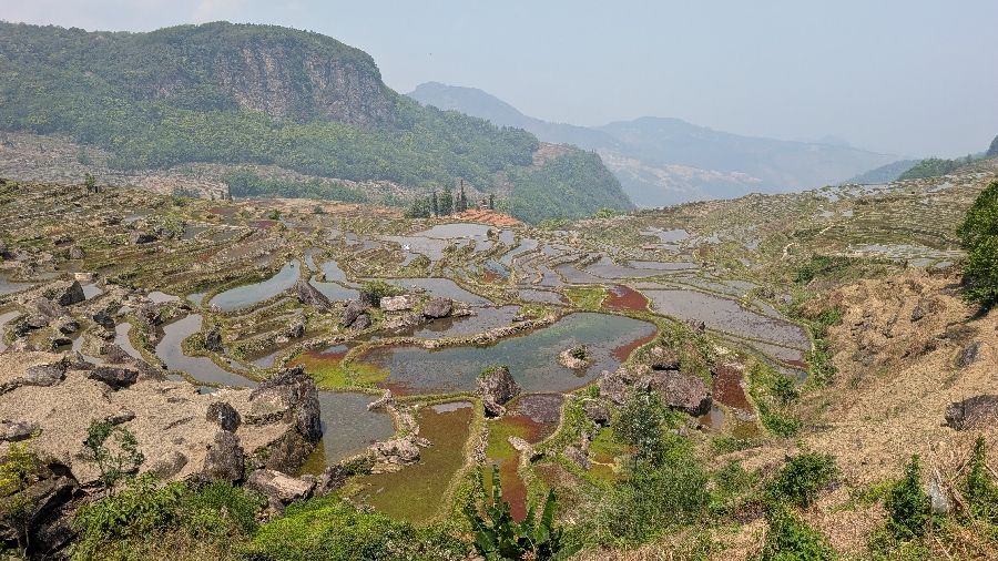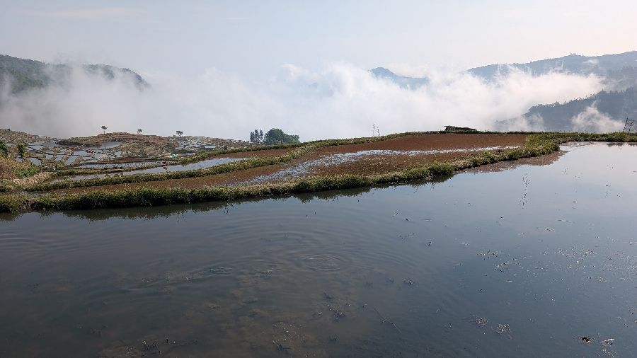 Die Einreise verlief sehr einfach. Ich hatte vorher das online Formular ausgefüllt, keine Warteschlange, Einreisestempel, fertig. Dann fuhr ich direkt mit dem Didi (Taxi) zum Bahnhof und weiter Richtung Yuanyang. Mit dem Zug von Hekoubei nach Honghe, wo ich weitere 3 Stunden im Sammeltaxi saß, zur Unterkunft in Pugao. Die Reisterrassen hier zählen zu den schönsten weltweit. Komischerweise acheinen sie trotzdem nicht so bekannt zu sein. Ich habe rund um die Dörfer in zwei Tagen vielleicht 2 Dutzend Touristen gesehen. In einige Ecken bin ich aber nicht gekommen, die Reisterrassen liegen etwas verstreut. Die Verkehrsanbindung ist auch alles andere als einfach. Das hält sicherlich einige Besucher fern