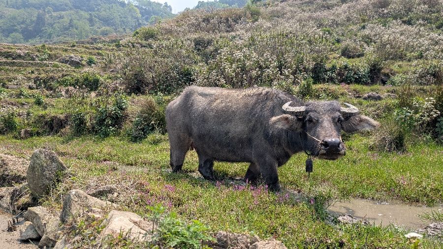 Die lange Anfahrt durch die Berge ist wieder eher was für das Auge als den Magen Häufig kriechen hier die Wolken hochEs war aber sehr trocken und sonnig. Die Terrassen verdanken ihren Wasserstand eines jahrhunderte alten BewässerungssystemDer Besitzer der Unterkunft hatte mir einen Vorschlag für eine Trekkingtour gemacht Die Tour führte natürlich hauptsächlich durch die Terrassen Meistens also nicht über befestigte Wege, sondern auf fußbreiten Trampelpfaden zwischen den Feldern Die werden auch mal von Büffeln genutzt diese Büffelspur dann lieber nicht Die Ernte schien weitestgehende erledigt Die Terrassen ziehen sich den ganzen Berg nach unten. Es ließe sich tangelang laufen Ich fand es gar nicht so schlecht, dass die Reisterrassen keinen Höchststand an Wasser aufwiesen. Dadurch ist der Spiegeleffekt zwar nicht ganz so stark……aber die Farben um so mehreine zeitlang ging es nur über eine schmale Mauer Dann hatte ich mich verlaufen Ea wurde schließlich eine komplette Tageswanderung Wenn man nicht direkt durch die Becken laufen möchte, kann es sehr mühsam werden zum Ziel zu finden Schließlich bei dem Dorf, dessen Dächer den Häusern etwas pilzartiges verleihen und daher touristisch gut bekannt ist. Das äußert sich darin dass ordentlich Eintritt verlängert wird. Ein Foto von außerhalb hat mir aber gereicht